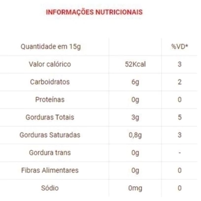 Informações Nutricionais: Porção de 15g (1 unidade)