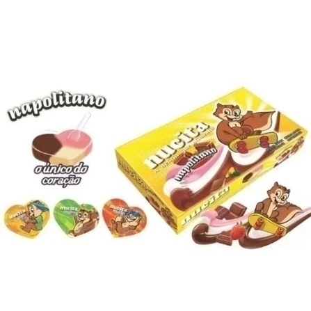 Nucita são cremes deliciosos para qualquer momento! Com formato de coração e sabor napolitano (morango, leite, avelã). Ideal para compor lembrancinhas de aniversário, para a criançada levar na lancheira ou para se deliciar a qualquer hora!